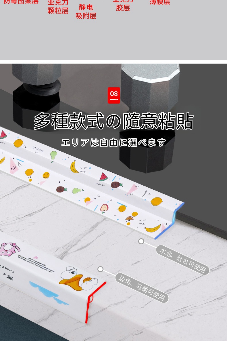 5分鐘前限時搶購 美縫貼防水防霉廚房水槽洗碗灶台封邊擋水條,衛生間馬桶邊緣縫隙貼 - 【98%客戶的選擇】5入組-NT$1150