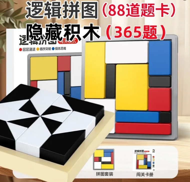 半小時前限時搶購 邏輯拼圖,邏輯思維訓練,積木遊戲 ,兒童益智方塊 ,親子互動,智力開發玩具 - 邏輯拼圖+隱藏積木(365關卡+16個積木) 2入组-NT$1280